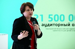 Эксперт Надежда Герасименко рассказывает о продуктах проекта на прошедшем в апреле Московском международном салоне образования